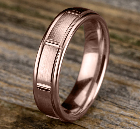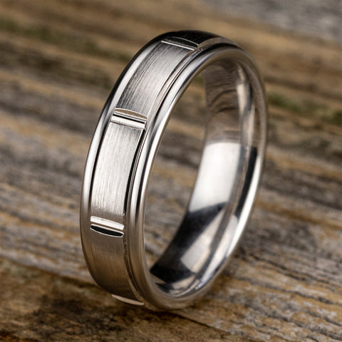 Satin finish with polished vertical cuts, polished round edges