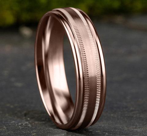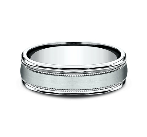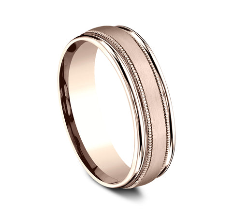 Satin finish, milgrain detailing, polished round edges