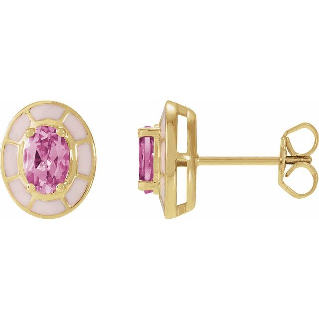 Natural Pink Tourmaline and Pink Enamel Stud Earrings